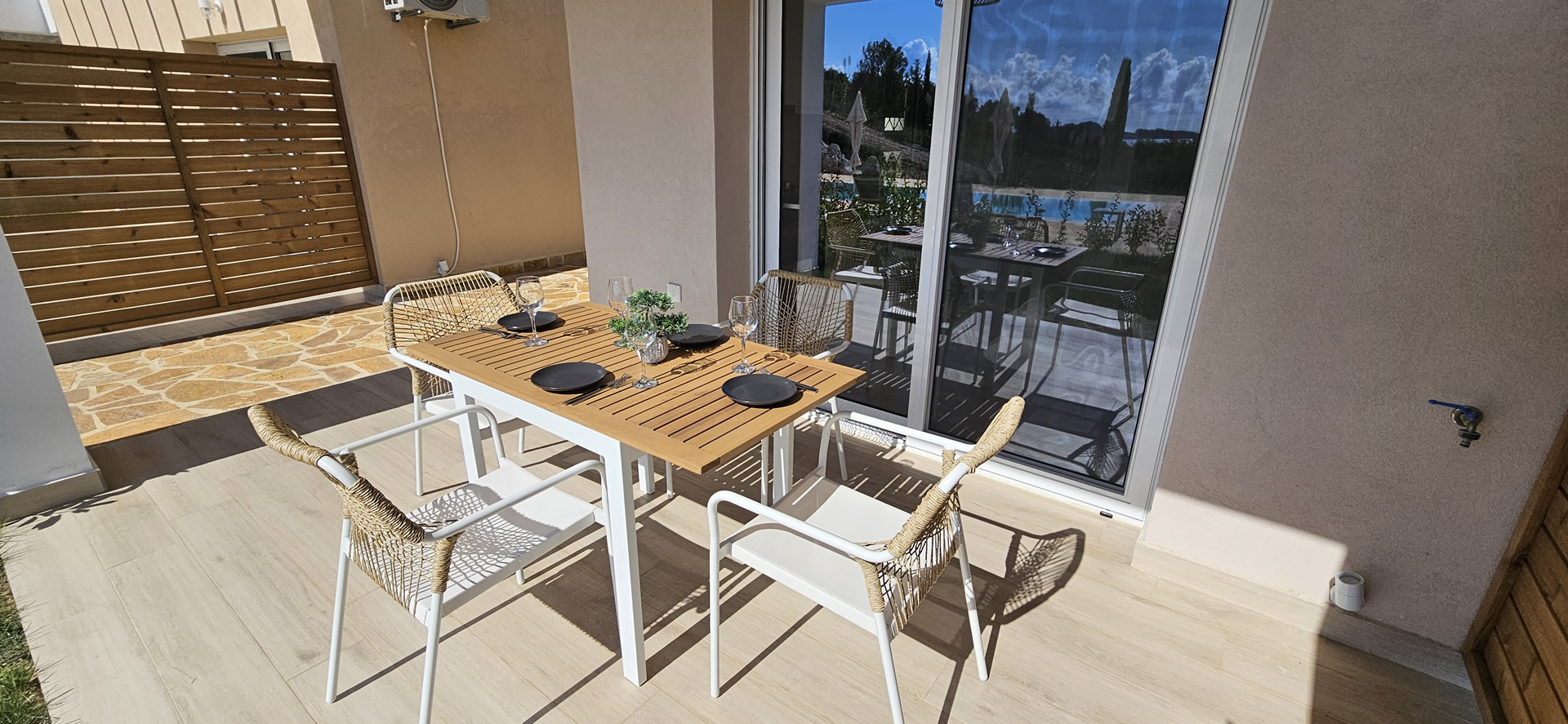 Surrounded by the lush beauty of cypress and olive trees, House 3 offers a peaceful retreat immersed in nature. With stunning views of the rolling hills and the sparkling sea, this serene home invites you to unwind and reconnect with the natural world.