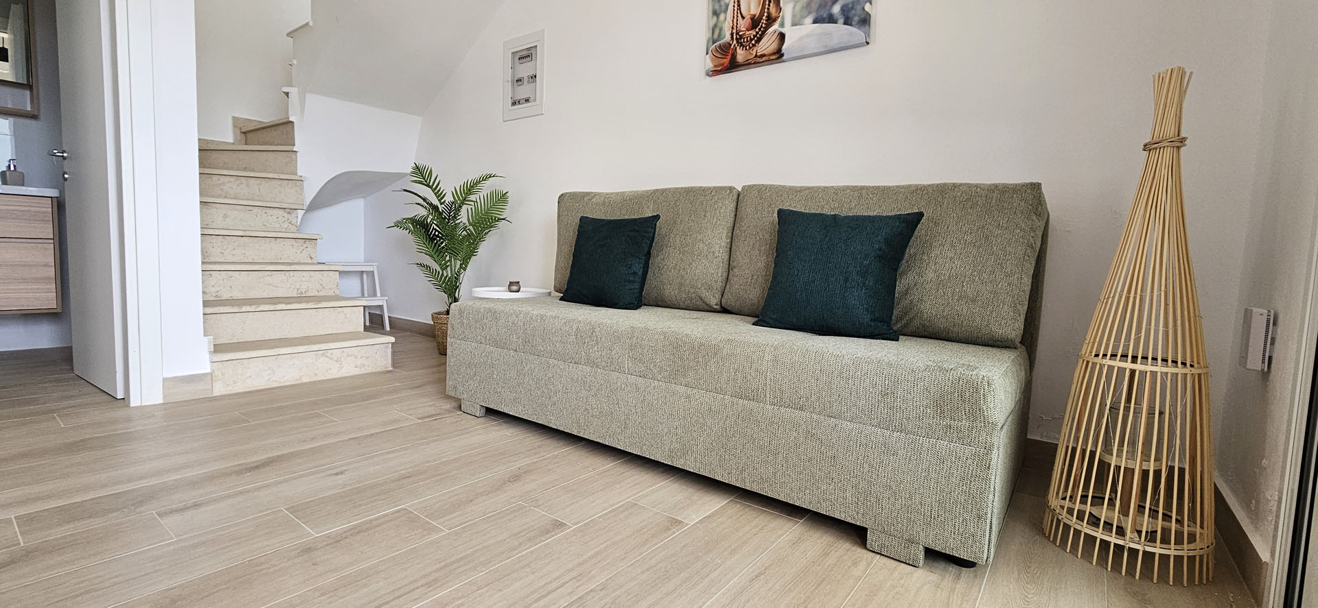 Escape to House 4, a tranquil retreat where peace and comfort come together effortlessly. Surrounded by the soothing beauty of nature and offering panoramic views of the rolling hills and sparkling sea, this house provides a perfect setting for rest and rejuvenation.
